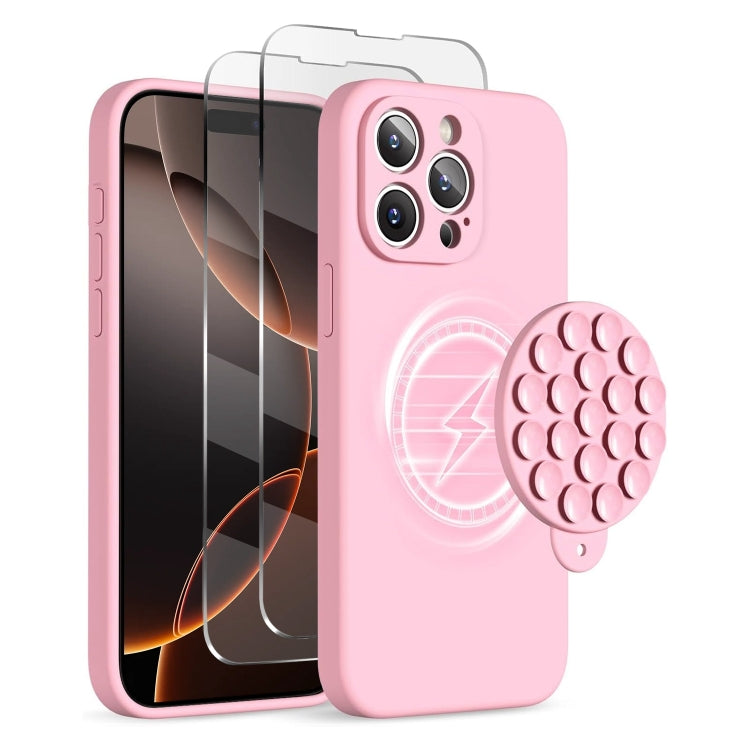 Funda de Silicona con Ventosa Magsafe para iPhone 16 Pro Max con Película de Pantalla (Rosa)