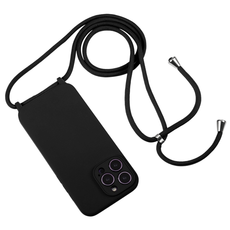 Funda de Silicona Líquida con Cordón Cruzado para iPhone 16 Pro (Negra)