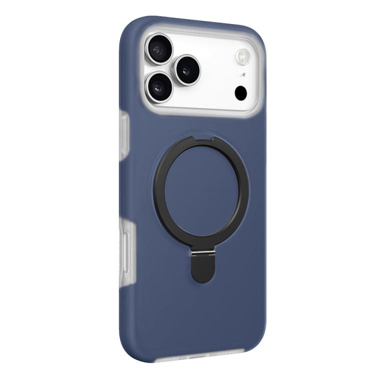 Funda de silicona líquida tipo gelatina con soporte MagSafe para iPhone 17 Pro Max (azul oscuro + negro)