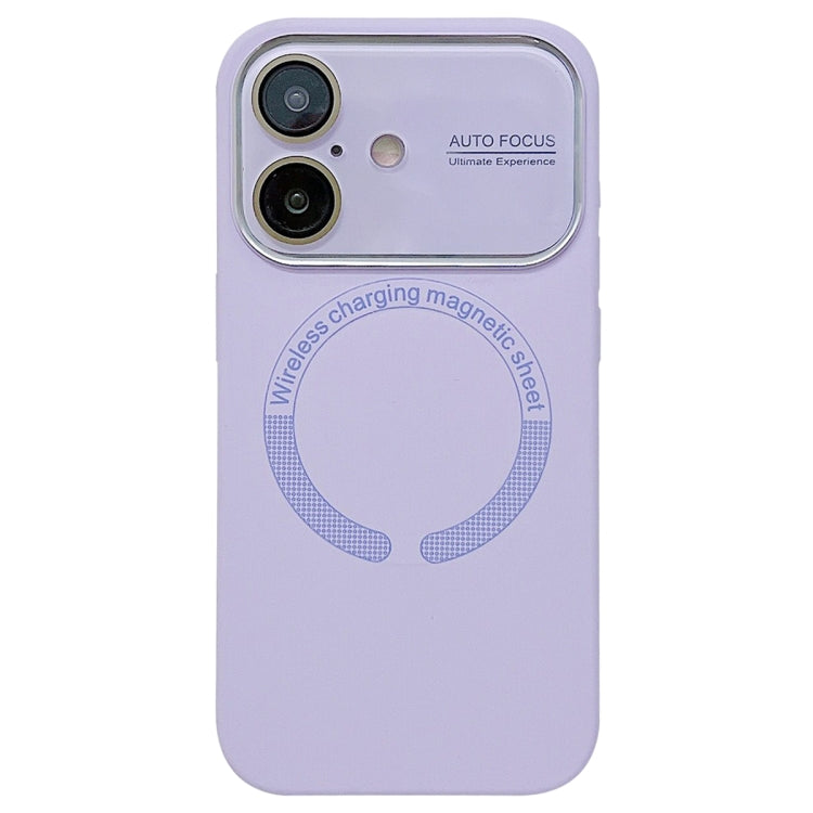 Funda de Silicona Magsafe para iPhone 16 con Lente de Vidrio Acrílico de Ventana Grande (Lila)