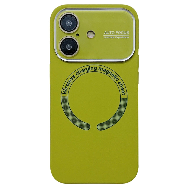 Funda de Silicona Magsafe para iPhone 16 con Lente de Vidrio Acrílico Ventana Grande (Verde Sauce)