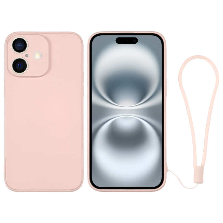 Funda de Silicona para iPhone 16 con Correa para la Muñeca (Rosa)