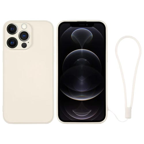 Funda de Silicona para Teléfono iPhone 12 Pro con Correa para la Muñeca (Blanco)
