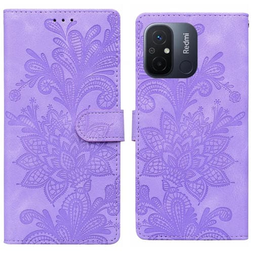 Funda de Teléfono con Hebilla Magnética y Encaje Floral En Relieve para Redmi 11A/12C (Morado)