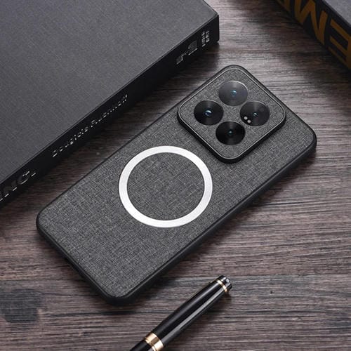 Funda De Teléfono Con Textura De Tela Magnética De Pu Para Xiaomi 14T Cd (Gris)