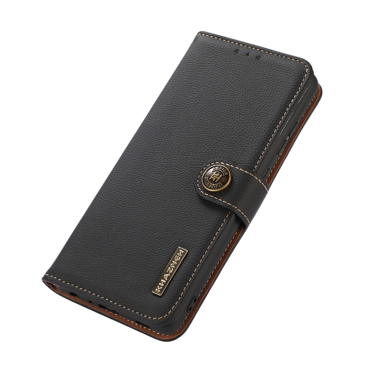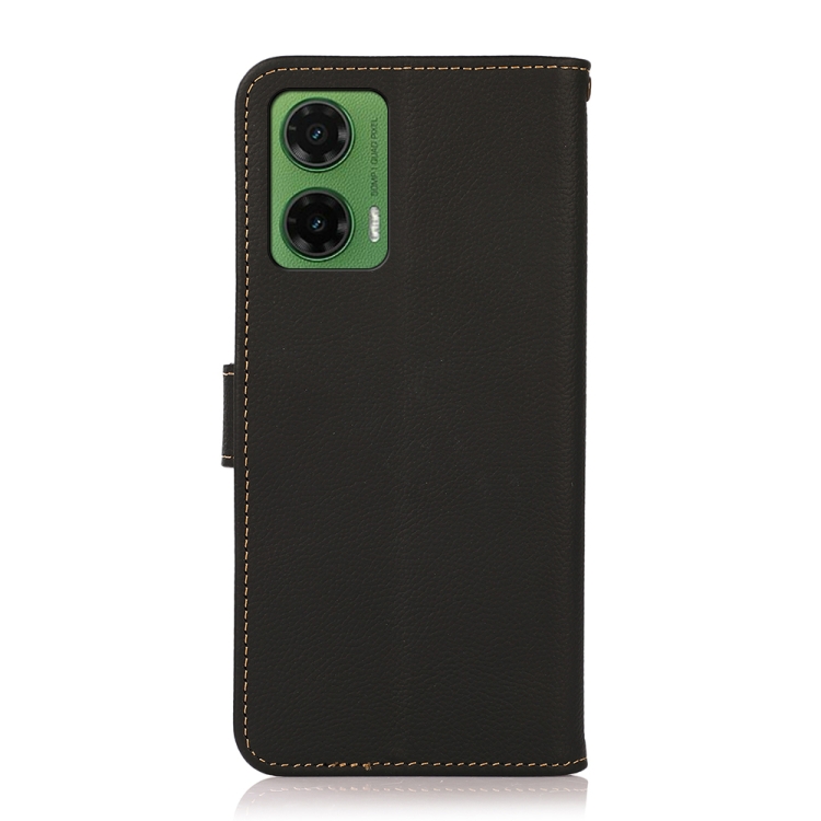 Funda de Cuero Genuino Khazneh Custer para Motorola Moto G35 con Rfid (Negro)