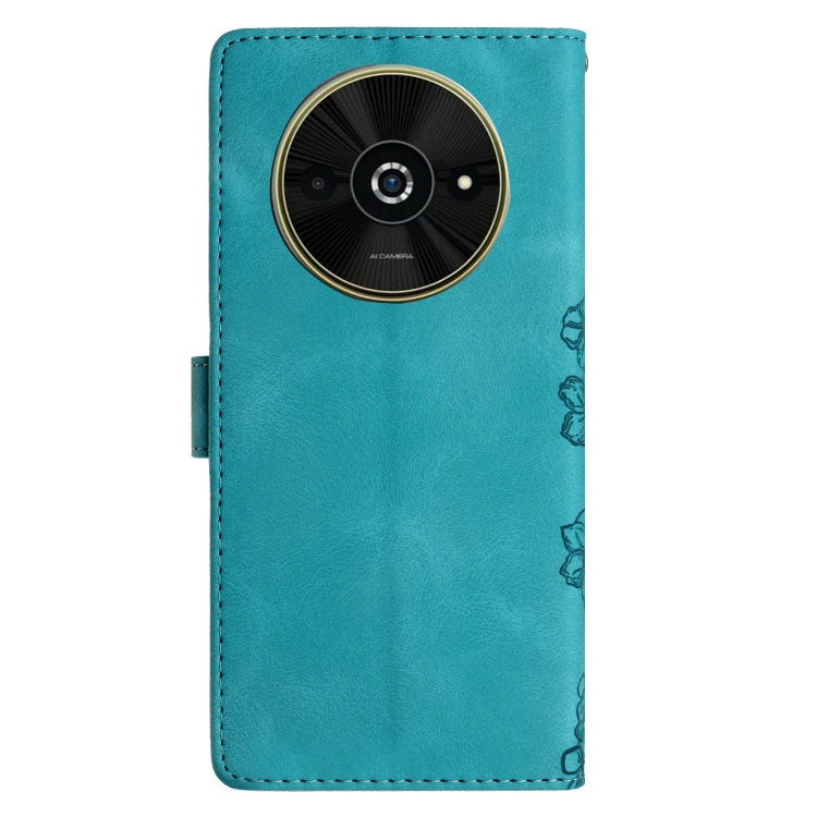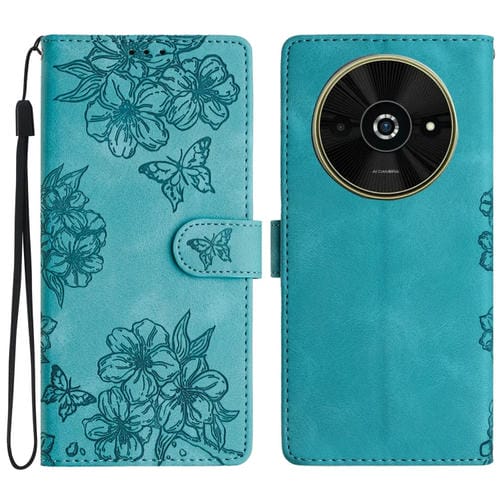 Funda de Teléfono de Pu con Relieve de Piel de Mariposa y Diseño de Flor de Cerezo para Xiaomi Poco C61 (Verde)