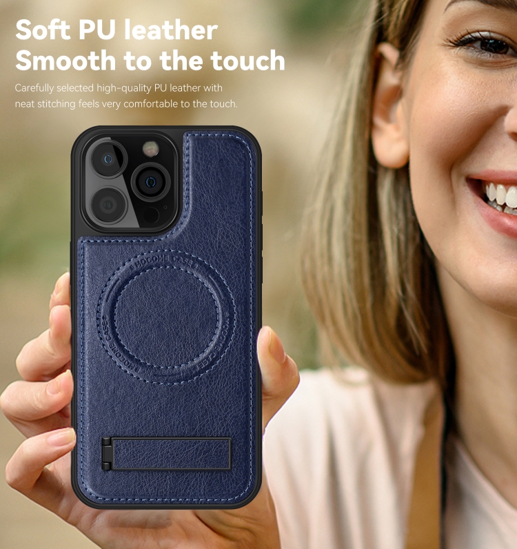 Funda de Teléfono PU con Soporte Multifunción Magsafe para iPhone 16 Pro (Azul)