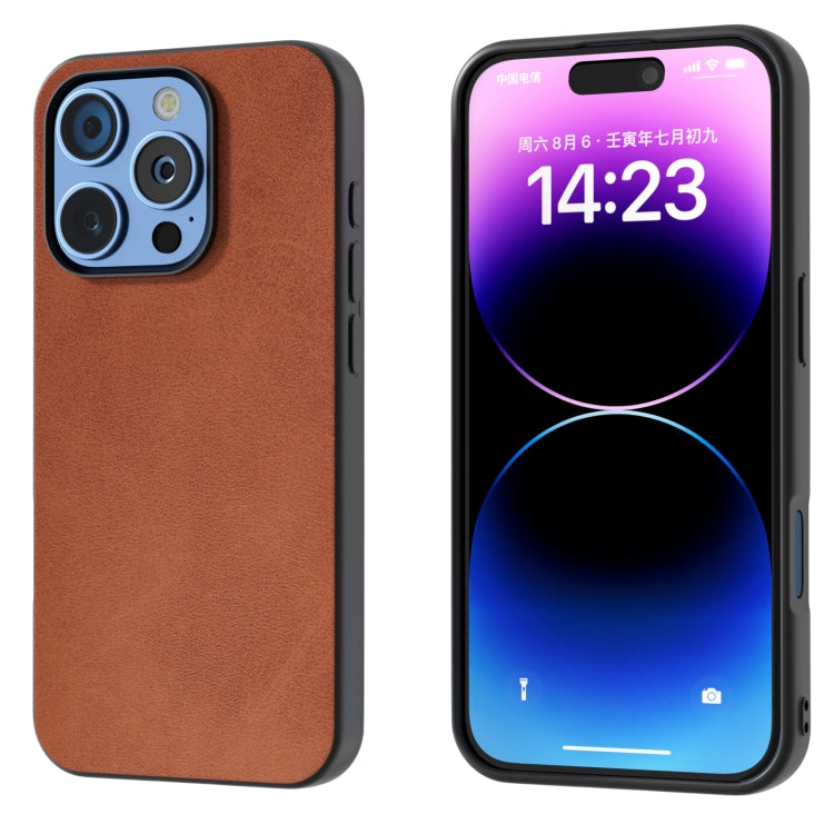 Funda de Teléfono Pu Textura Becerro Dos Colores Marco Negro iPhone 16 Pro Max (Marrón)