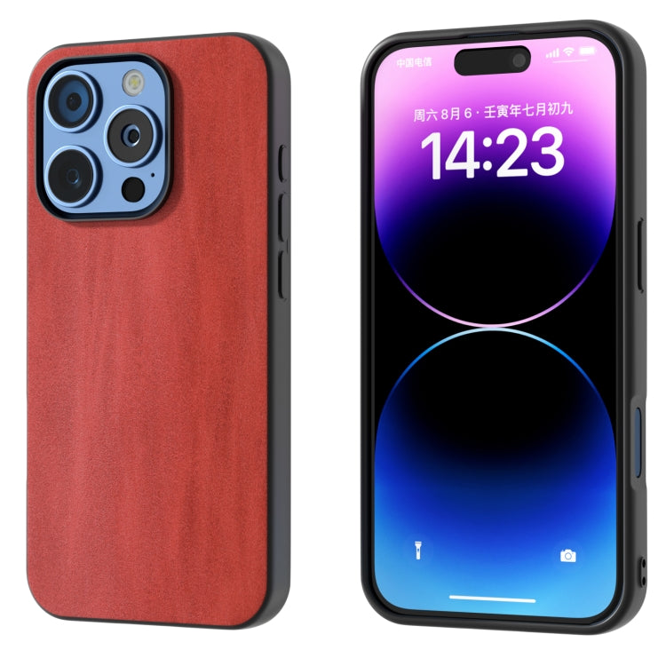 Funda de Teléfono PU iPhone 16 Pro Max Textura Becerro Dos Colores Marco Negro (Rojo)
