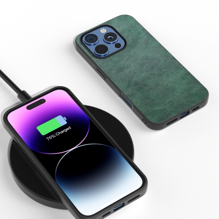 Funda de teléfono PU con textura Lichi para iPhone 16 Pro Max (Verde)