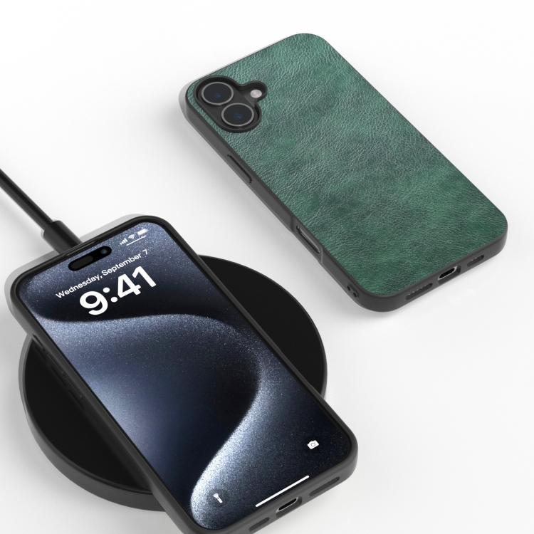 Funda de Teléfono Pu Textura Lichi Dos Colores para iPhone 16 (Verde)