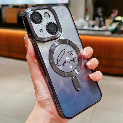 Funda de Teléfono TPU Dual-Love iPhone 13 Purpurina Degradado Plumas (Negra)