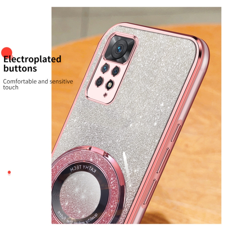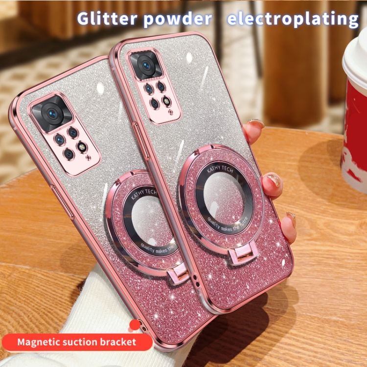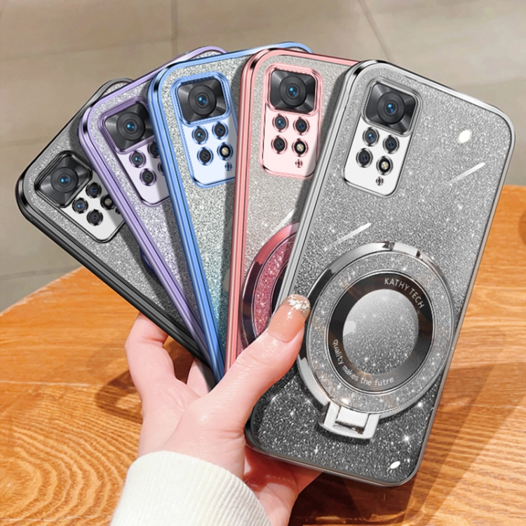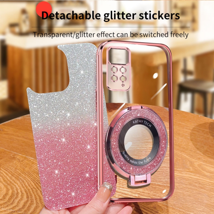 Funda de Teléfono de TPU con Soporte Redondo y Purpurina Degradada Chapada Global para Redmi Note 11 Pro 4G/5G (Negra)