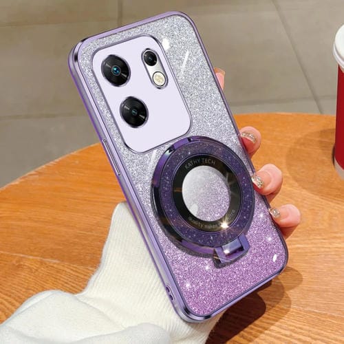 Funda de Teléfono TPU con Soporte Redondo y Purpurina Degradada para Infinix Zero 30 4G (Morado)