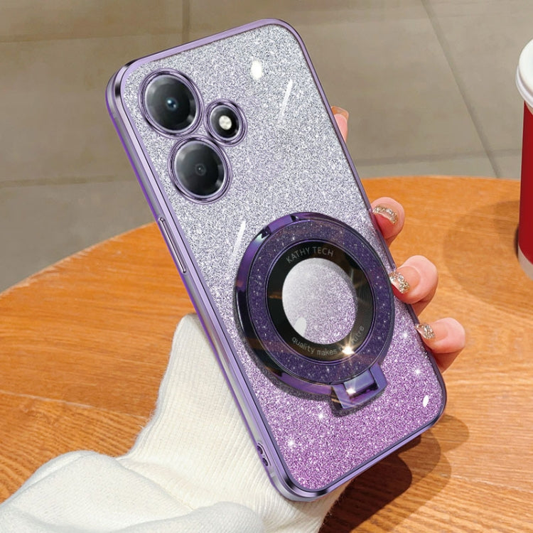 Funda de TPU con Soporte Redondo y Purpurina Degradada para Infinix Hot 30 Play (Morado)