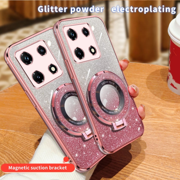 Funda de TPU con Soporte Redondo y Purpurina Degradada para Infinix Note 30 Pro (Plateada)