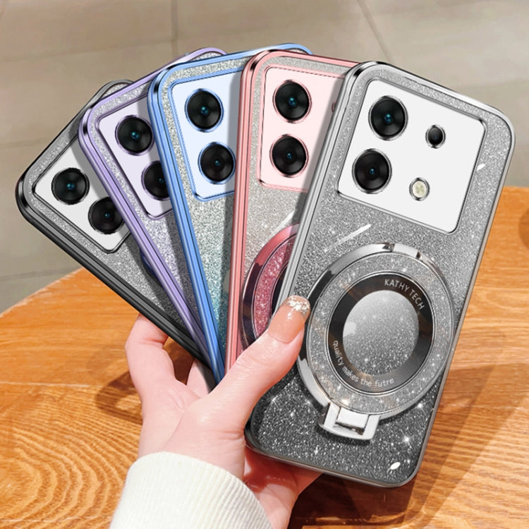 Funda de TPU para Infinix Zero 30 5G con Soporte Redondo y Purpurina Degradada (Rosa)