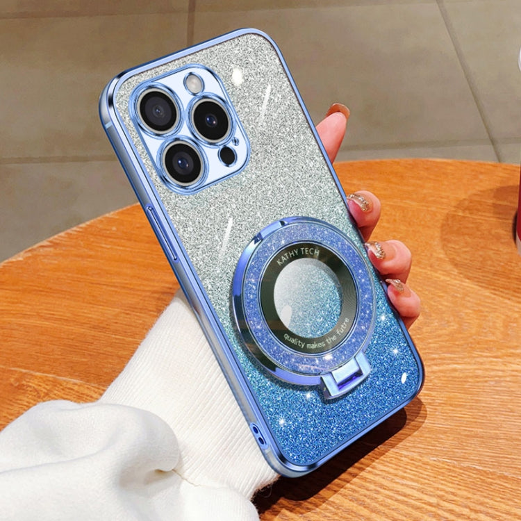 Funda de Teléfono TPU con Soporte Redondo y Purpurina Degradada para iPhone 16 Pro Max (Azul Sierra)