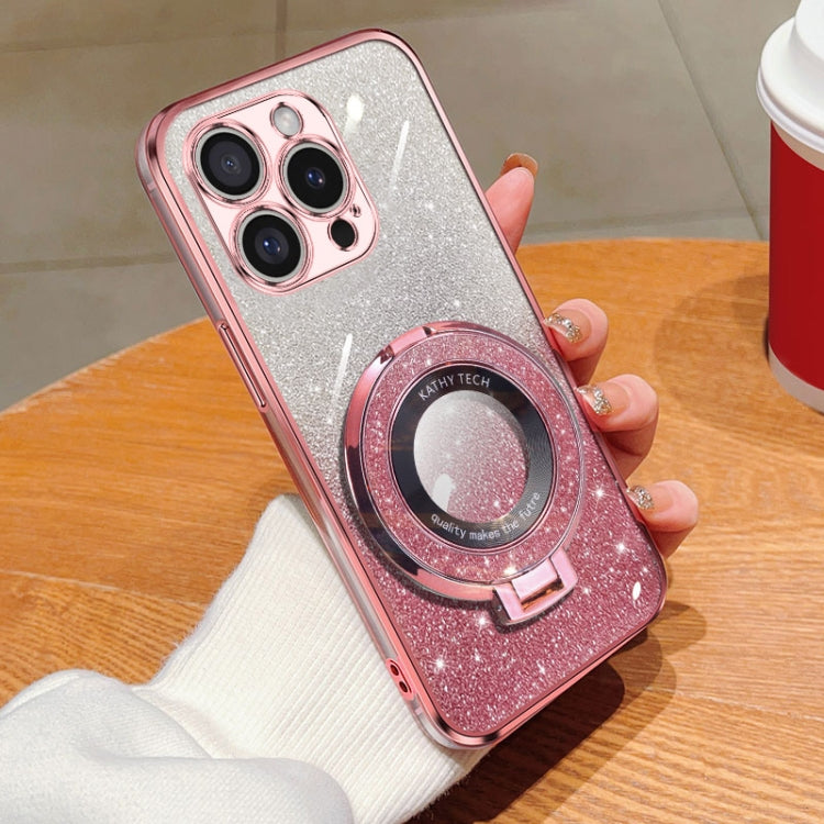 Funda de Teléfono TPU con Soporte Redondo y Purpurina Degradada para iPhone 16 Pro Max (Rosa)