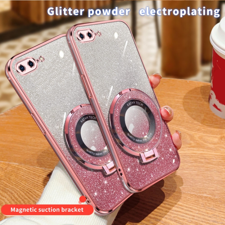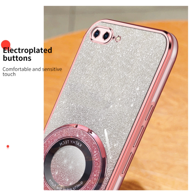 Funda de teléfono TPU con soporte redondo y purpurina degradada para iPhone 7 Plus/8 Plus (Plateada)