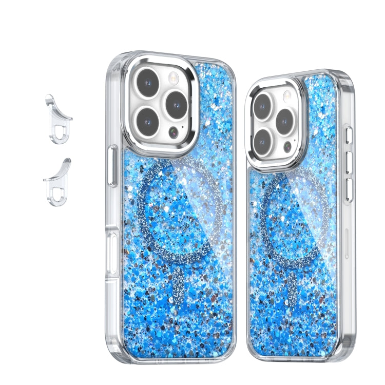Funda de Teléfono TPU Magnética Magsafe con Purpurina Epoxi para iPhone 16 Pro (Azul)