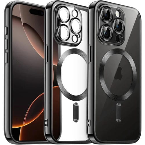 Funda de Teléfono Magnética TPU con Galvanoplastia Transparente Magsafe para iPhone 16 Pro (Negra)