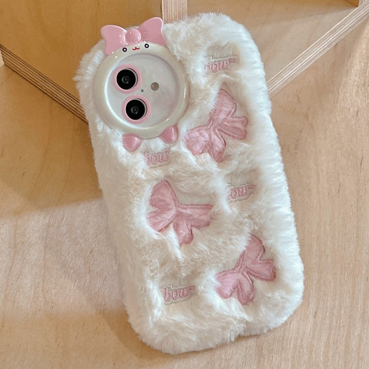 Funda TPU con Bordado de Felpa para iPhone 16 (Lazo Beige)
