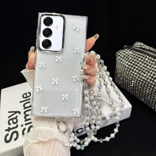 Funda TPU con Cadena y Lazo Little Fresh para Samsung Galaxy A25 5G (Blanca)