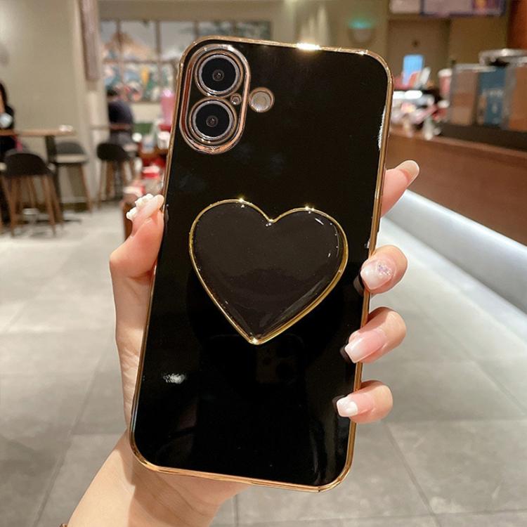 Funda de TPU con diseño de corazón de amor y galvanoplastia para iPhone 17 (negra)