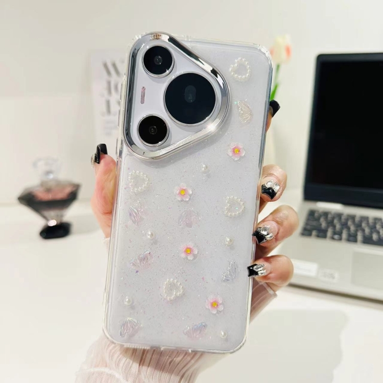 - 1x Funda TPU Huawei P50 Pro con Lazo 3D y Diseño de Flores y Mariposas
