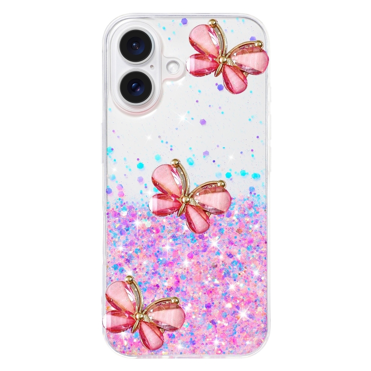 Funda TPU iPhone 16 Diseño Mariposa Brillo Cielo Estrellado Luminoso (Rosa)
