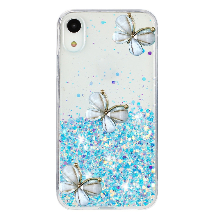 Funda TPU iPhone Xr Diseño Mariposa Brillo Cielo Estrellado Luminoso (Azul)