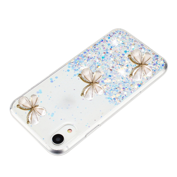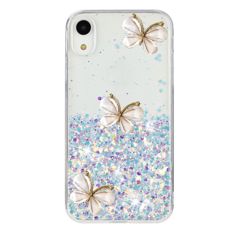 Funda TPU iPhone Xr Diseño Mariposa Brillo Cielo Estrellado Luminoso (Blanca)