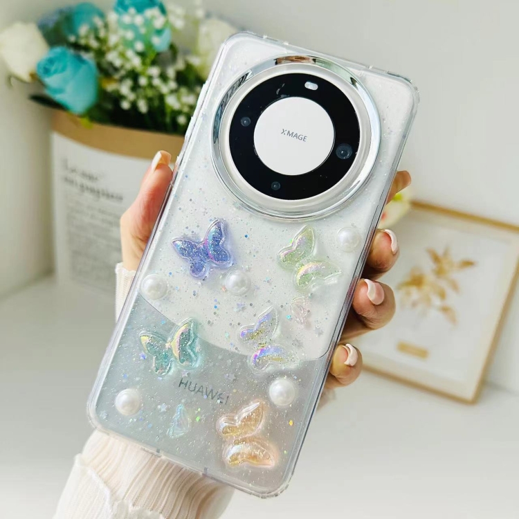 Funda TPU Huawei Mate 40 Pro diseño Mariposas cristales tridimensionales (Mariposa Perlada)