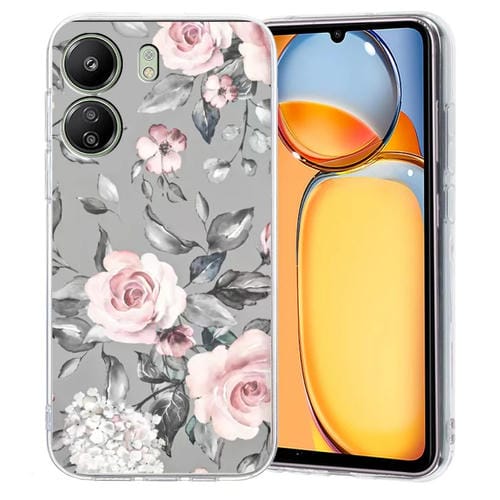 Funda de TPU con Patrón de Pintura Colorida para Redmi 13C 4G (Flores En Gris)