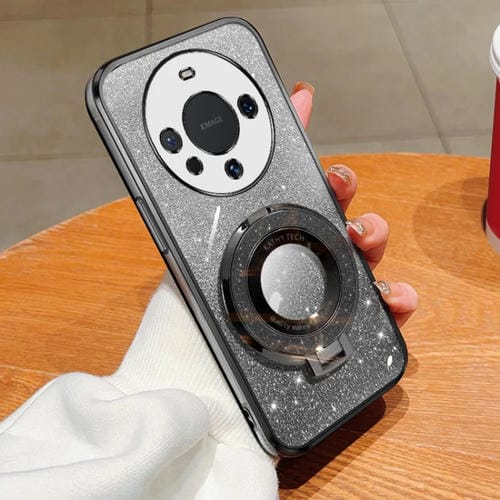 Funda TPU con Soporte Redondo y Purpurina Degradada para Huawei Mate 60 (Negra)