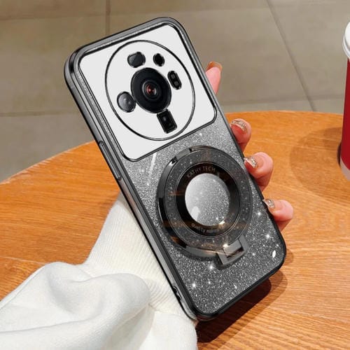Funda de TPU con Soporte Redondo y Purpurina Degradada para Xiaomi 12S Ultra (Negra)