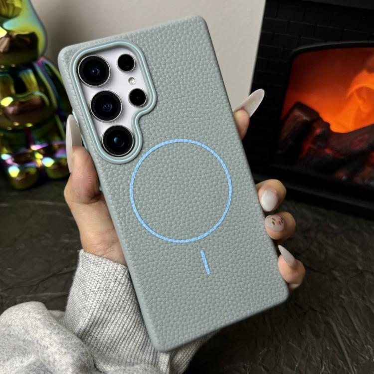 Funda de TPU con textura de lichi MagSafe para Samsung Galaxy S25+ 5G (azul claro)