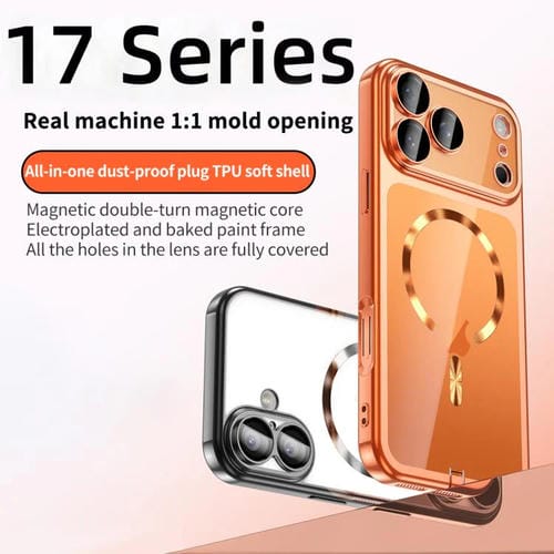 Funda de TPU MagSafe para iPhone 17 con revestimiento de pintura, tapón antipolvo y película para lente (transparente)