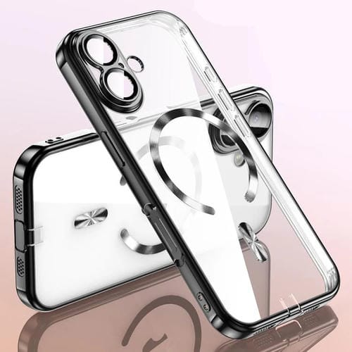 Funda de TPU MagSafe para iPhone 17 con revestimiento de pintura, tapón antipolvo y protector de lente (negra)