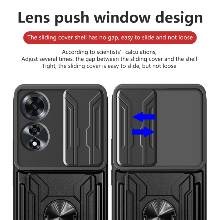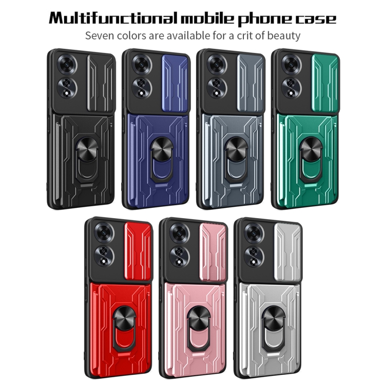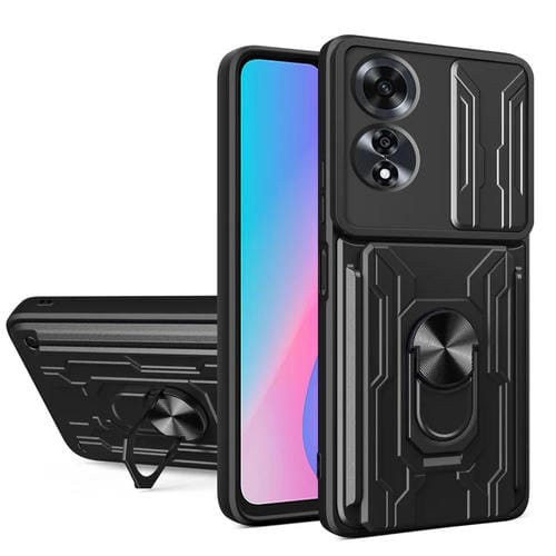 Funda Deslizante de TPU y PC con Ranura para Tarjetas para Oppo A60 4G (Negro)