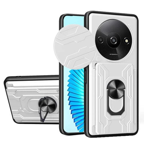 Funda de TPU+PC con Ranura para Tarjetas y Cierre Deslizante para Xiaomi Redmi A3 (Blanca)