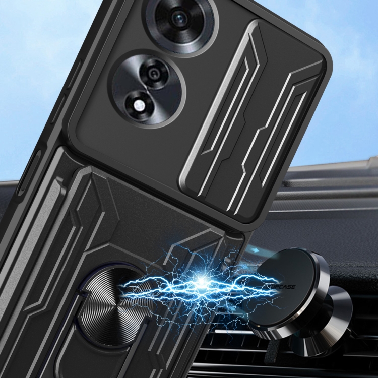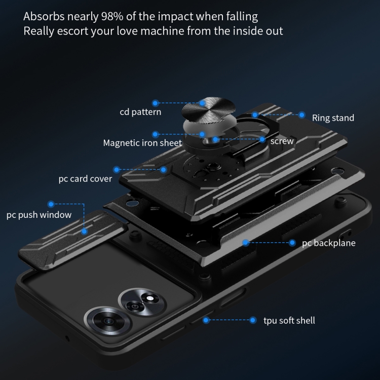 Funda Deslizante de TPU y PC con Ranura para Tarjetas para Oppo A60 4G (Azul)