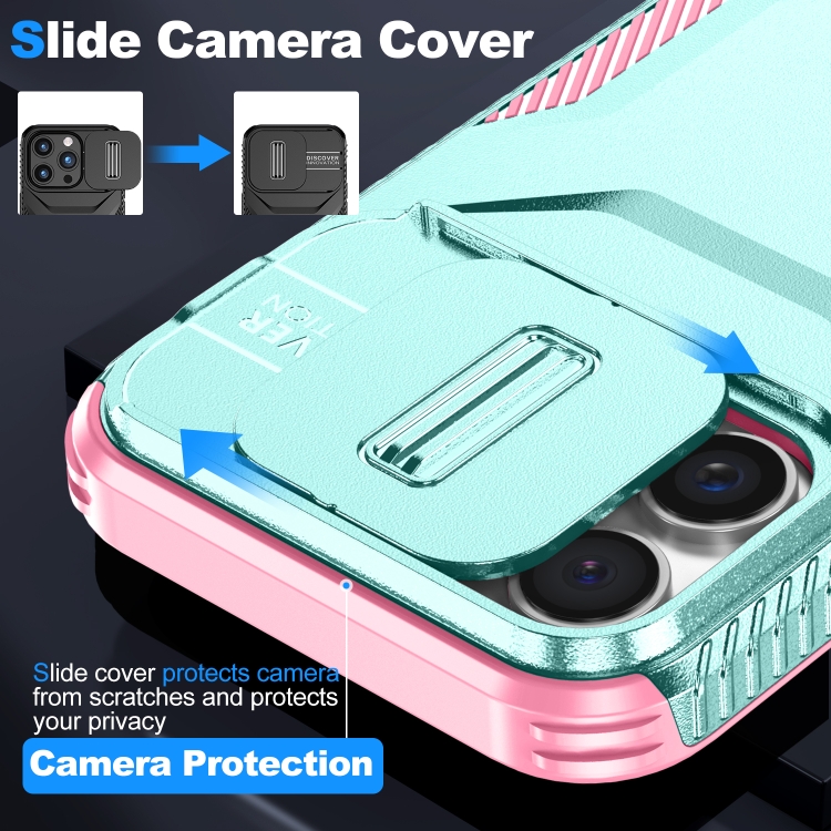 Funda Deslizante Camshield para iPhone 16 Pro (Gris, Verde y Rosa)