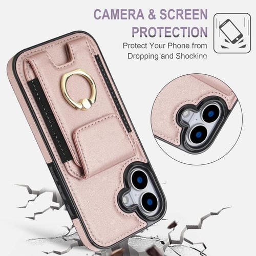 Funda elástica con tarjetero y anilla para iPhone 17 (oro rosa)