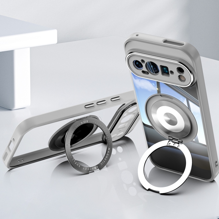 Funda híbrida acrílico y TPU con soporte Magsafe para Google Pixel 9 360 (Gris)