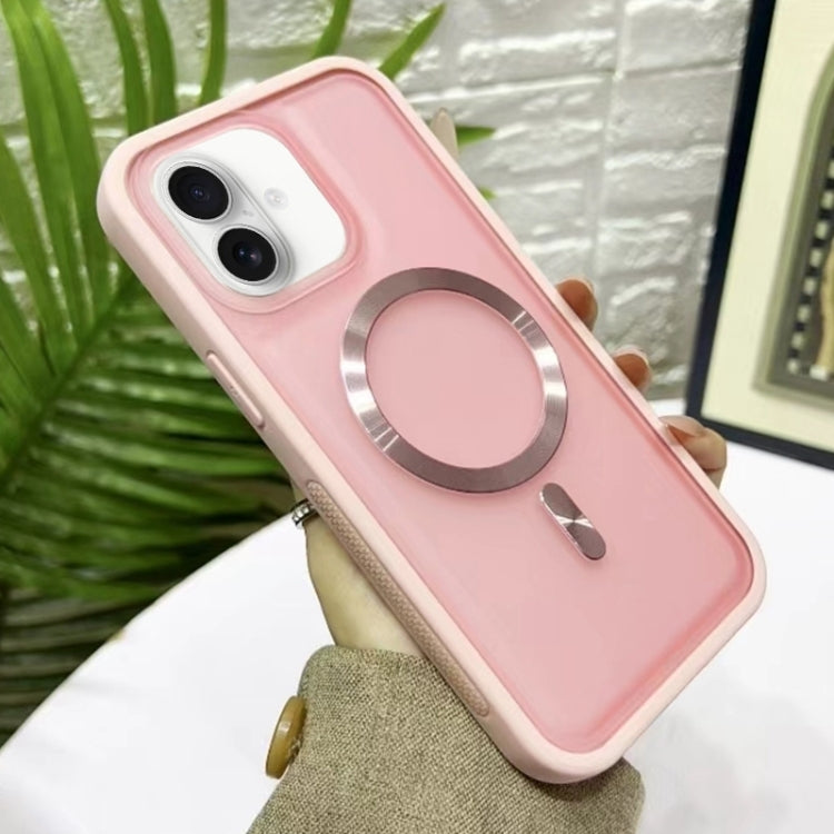 Funda híbrida silicona acrílica Magsafe para iPhone 16 (Rosa)