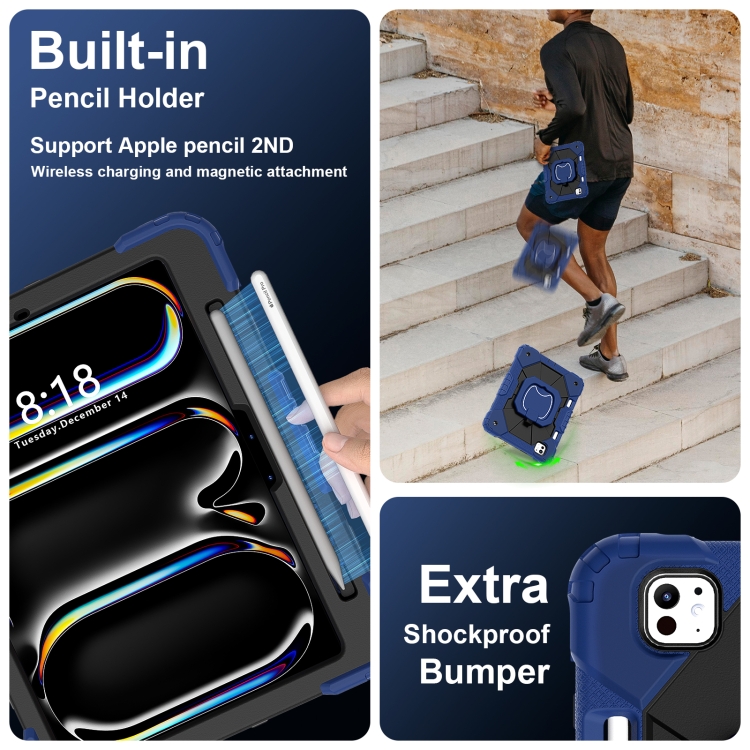 Funda híbrida de silicona con diseño de robot para iPad Pro 11 (2024) (Negro Marino)