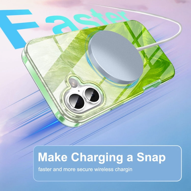 Funda híbrida TPU para iPhone 16 diseño plumas degradado Imd (Verde)